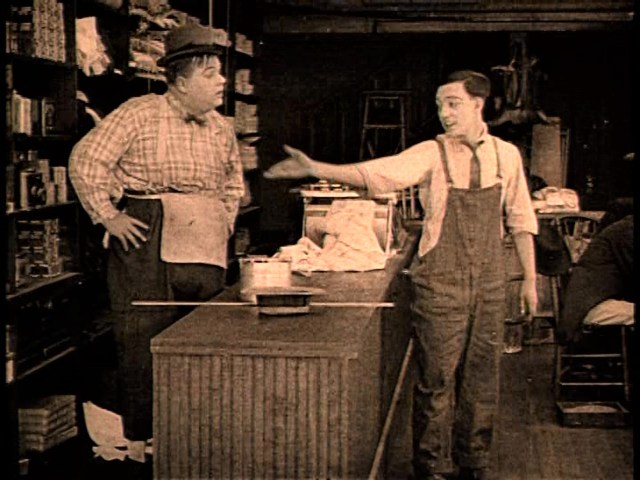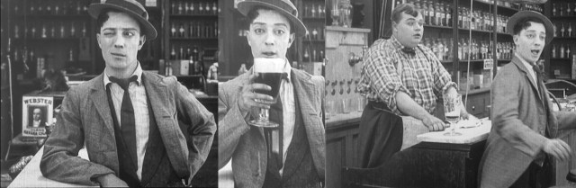 To begin, Buster smiles at Roscoe during their very first onscreen encounter, when Buster ‘remembers’ he left the coins to pay for his molasses in the bottom of the bucket. That didn’t take long – Buster broke his deadpan rule his first time at bat.
