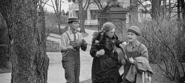 Keaton fans are familiar with Buster’s debut appearance on film in The Butcher Boy. A chance meeting on an New York street, an intriguing invitation, and so Buster visits Roscoe Arbuckle’s studio to give film a try. But look at what the movie reveals.