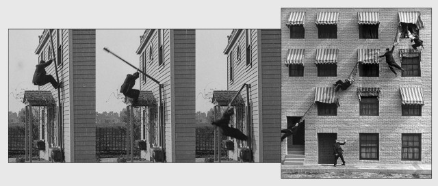 The story goes Buster accidentally missed the second building, which necessitated devising him falling through window awnings and swinging on rainspouts to salvage the failed scene.