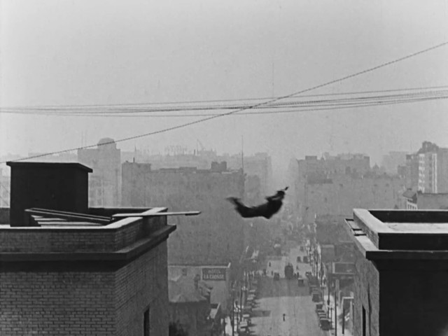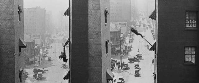 Buster swung on a hinged rainspout during The High Sign and swung from awning to awning during My Wife’s Relations. It’s easy to imagine Buster eagerly recreated these stunts on a large scale for his first feature film.