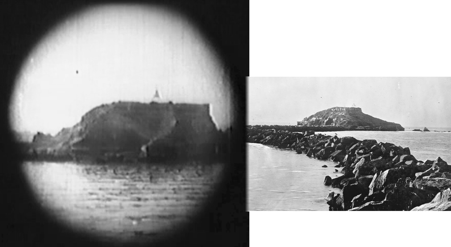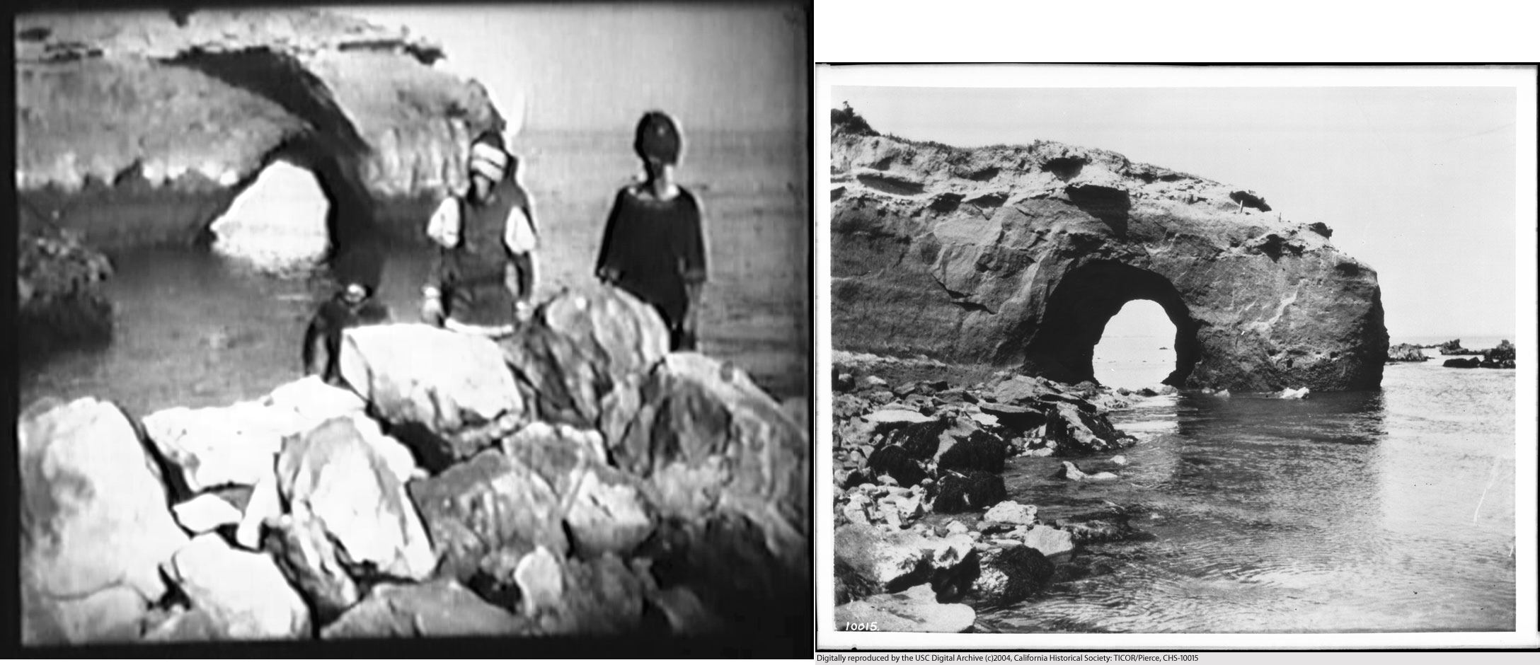 The natural arch on Deadman’s Island – Lonesome Luke’s Wild Women at left, USC Digital Archive California Historical Society