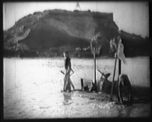 Lloyd’s production was called Lonesome Luke’s Wild Women, and involved Harold and Snub Pollard being shipwrecked on an island occupied by a Shah and his harem of wives. Though not widely distributed today, the film provides a fascinating historical record of this once familiar setting, and may be the only extant movie footage of this now lost geologic feature.