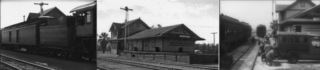 Click to enlarge. In One Week (1920), Buster travels up N. Eucalyptus Ave. in Inglewood near the town train station and the C. Ganahl Lumber Co.