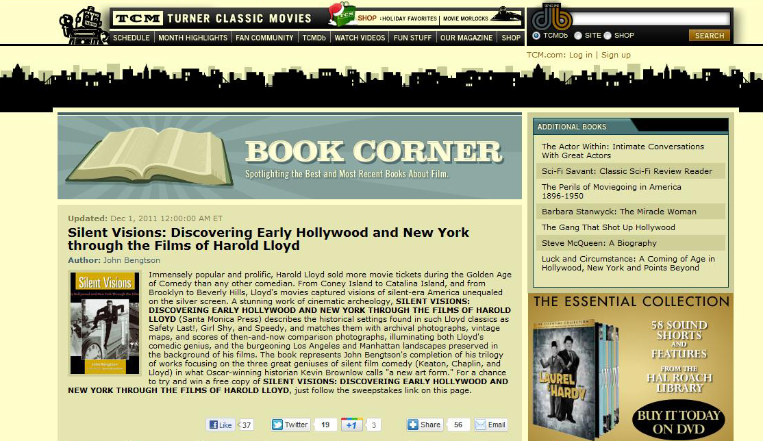 My Harold Lloyd book Silent Visions is the Turner Classic Movies “Book Corner” selection for the month of December. Visit the TCM site below and you can register for a chance to win one of 15 copies of my book.