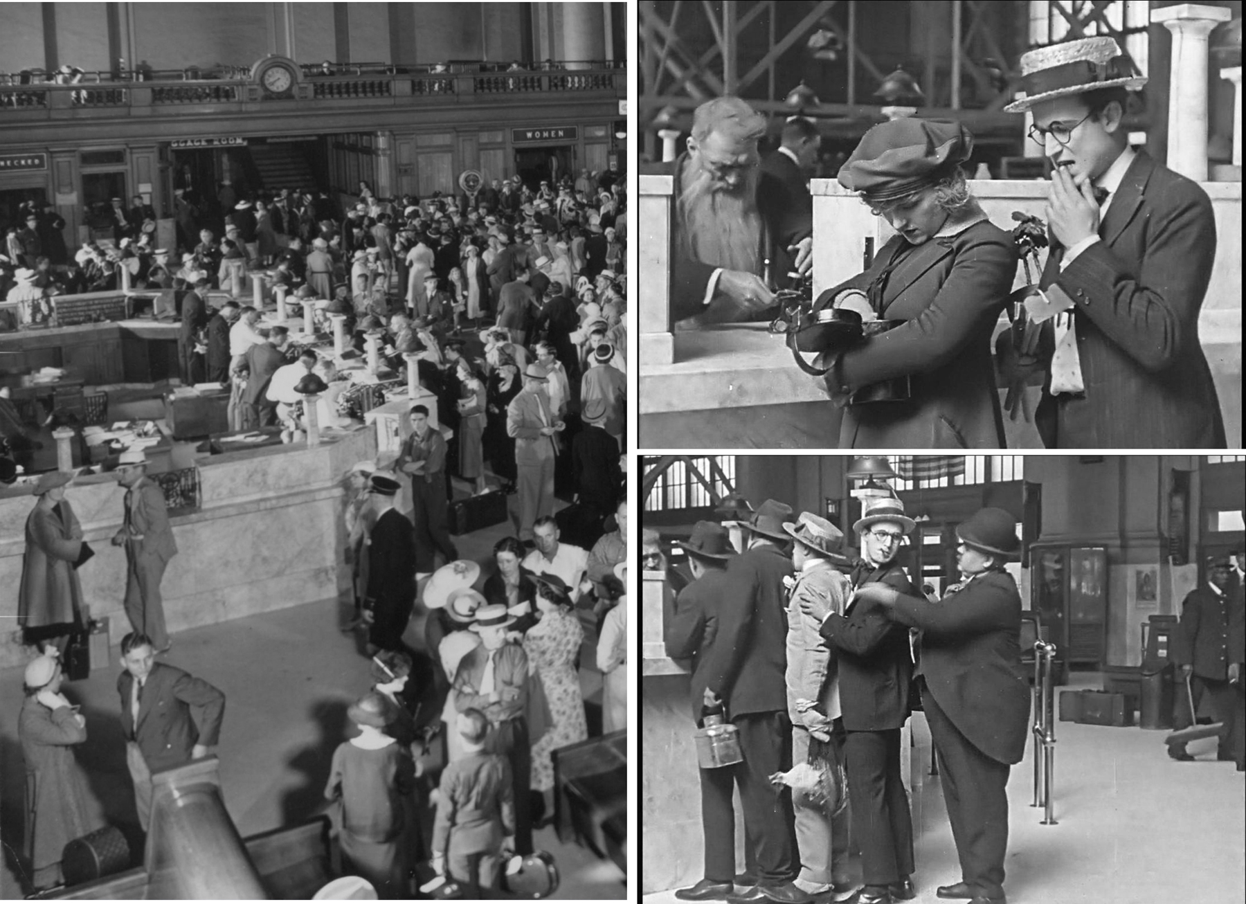 Harold Lloyd’s short film Just Neighbors also provides some remarkably rare views of the interior of the lost station. Compare this photo below, with scenes from Harold’s movie.