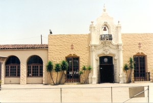 The Glendale Southern Pacific station was barely three years old when Buster Keaton used it to portray the station for Clayton, the fictitious college town where Buster’s character pursues higher learning in the 1927 comedy College. Above to the right, the station was also the setting for the climax to Act of Violence, a 1948 noir drama starring Van Heflin and Robert Ryan, who portray re-united army veterans who were once imprisoned together in a German POW camp during WWII.  Act of Violence contains several scenes filmed on Court Hill, near the Hill Street Tunnel, and on Bunker Hill, near Angels Flight.  Unfortunately, these nighttime scenes are darkly lit, and tightly framed, so there is not much to see.