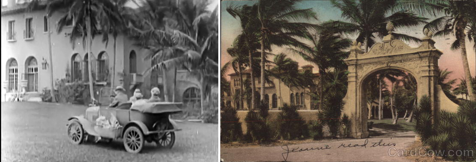 For a complete change of pace, here’s a Florida location highlighting W.C. Fields. Field’s feature comedy It’s A Gift (1934) is known for many classic sequences, including the sleeping-porch scene where a pushy insurance salesman searching for “Carl La Fong” disrupts Fields’ slumber. During another scene, Fields and family take a break from their cross-country drive to share a messy picnic on the grounds of a large estate that they mistakenly presume to be a public park. By the time the estate butler chases them away the grounds are ruined and buried in trash.