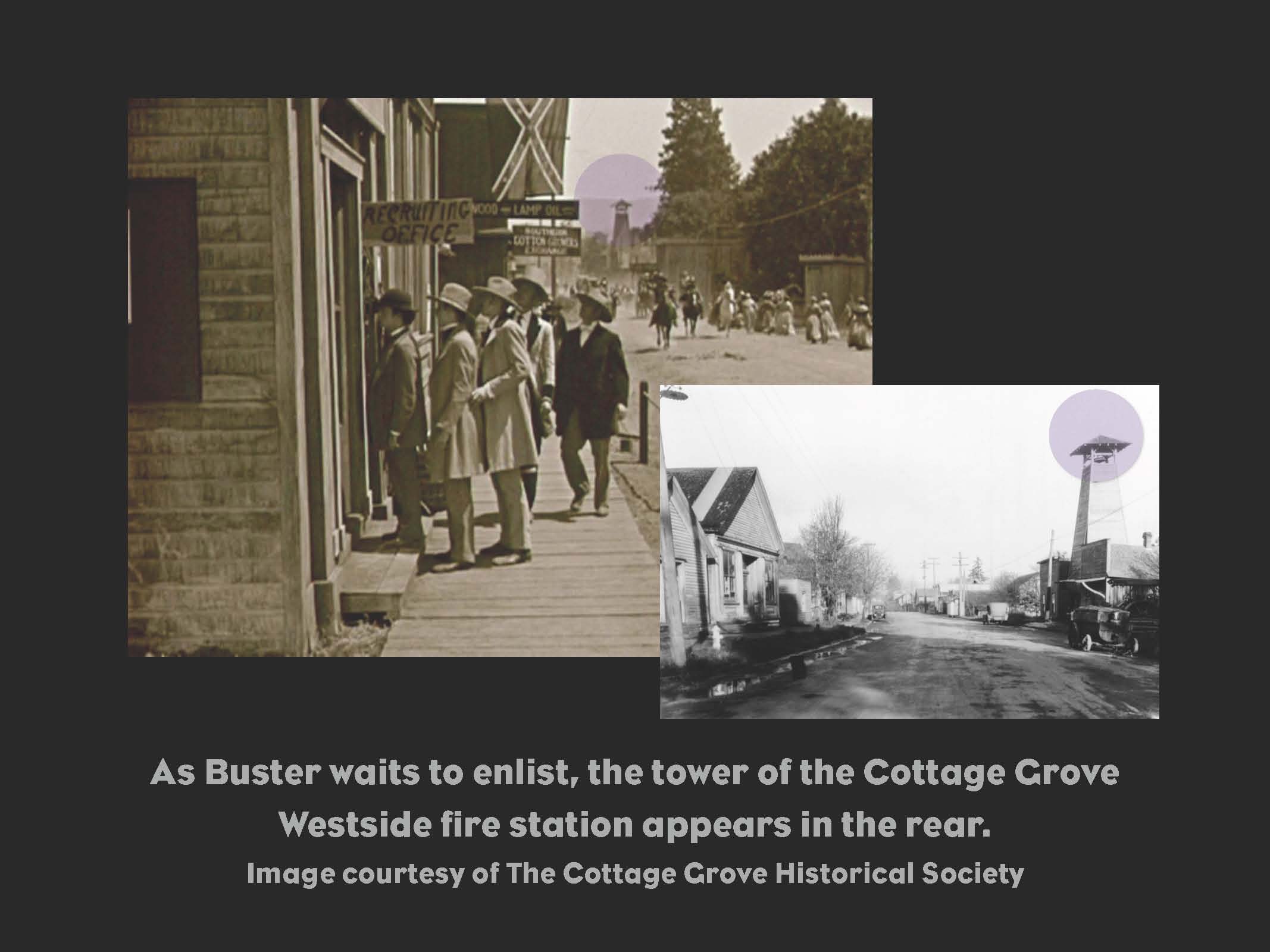 Below, the Bartell Hotel building in Cottage Grove where Keaton and crew stayed during the production.