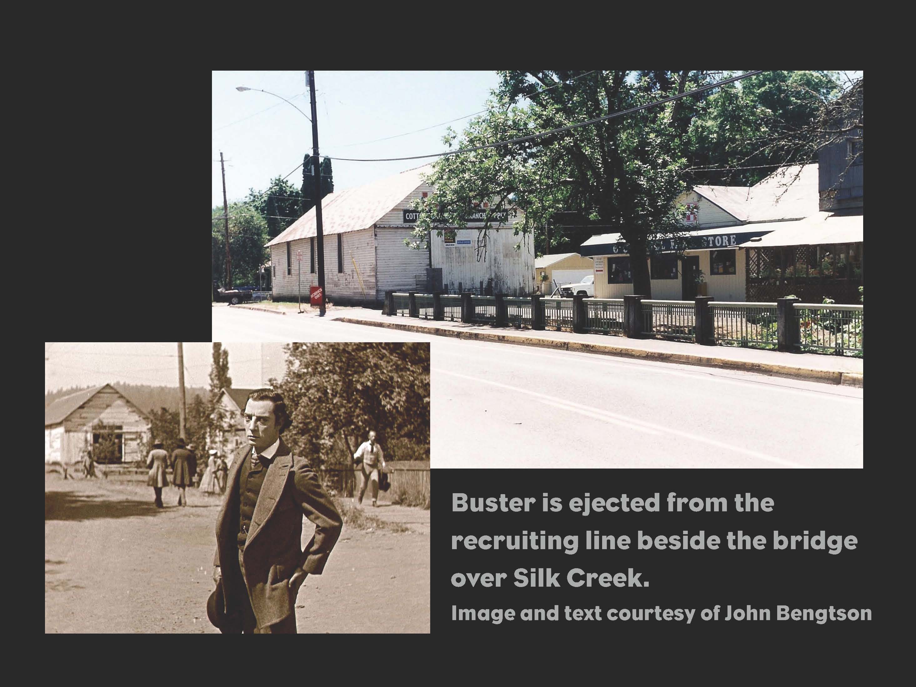 I am just heading home after a trip out west, during which I visited the Cottage Grove and Culp Creek film locations from “The General”, and wanted to say that your “Silent Echoes” was indispensable for locating and understanding the relevant film locations – – although I was also greatly assisted in making my way to the Culp Creek locations through assistance from Lloyd Williams, (from the Cottage Grove Historical Society, as you know).