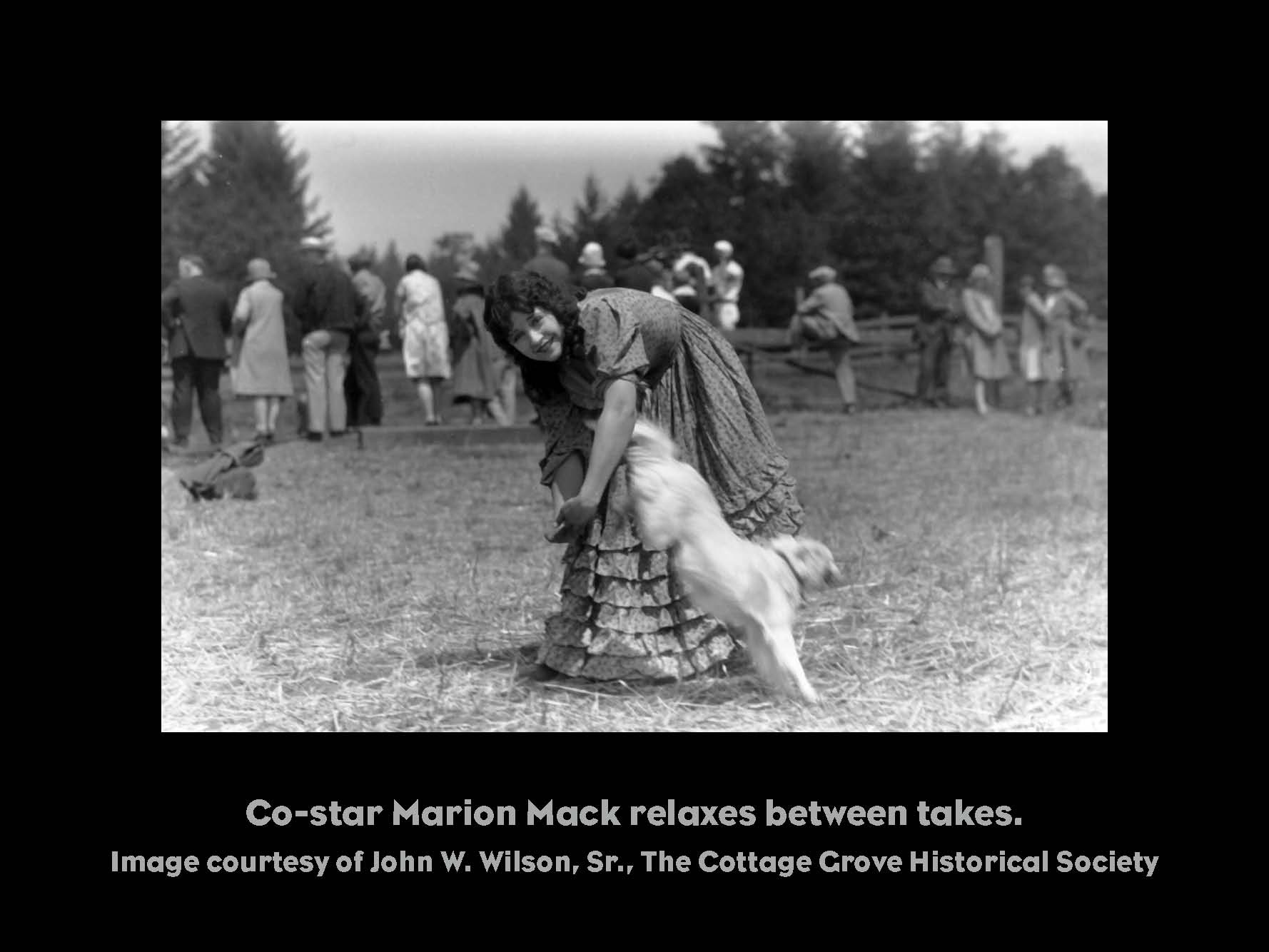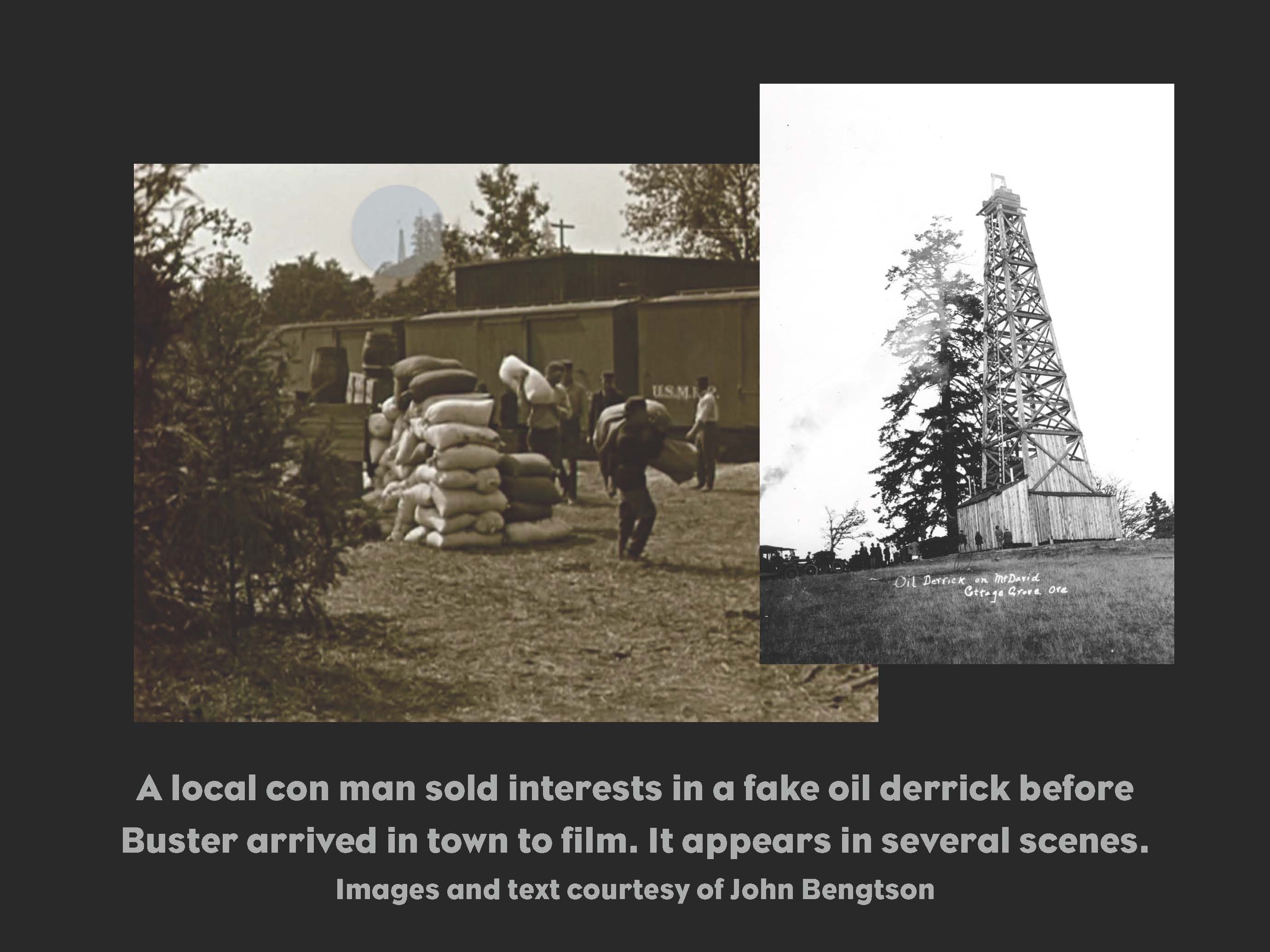 Buster’s antics were well-documented in the local paper.  Described as a kindly monarch at work, and quick, nimble, and alert on the ball field, Buster played charity baseball games with several teams, both in town and in nearby Eugene, and would halt production for a quick game whenever he was stuck for an idea.  Buster’s co-star Marion Mack endeared herself to the locals by riding around town between takes on her bicycle, reportedly to maintain her trim figure.