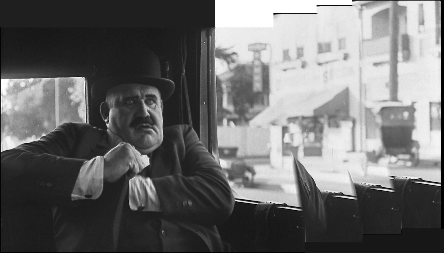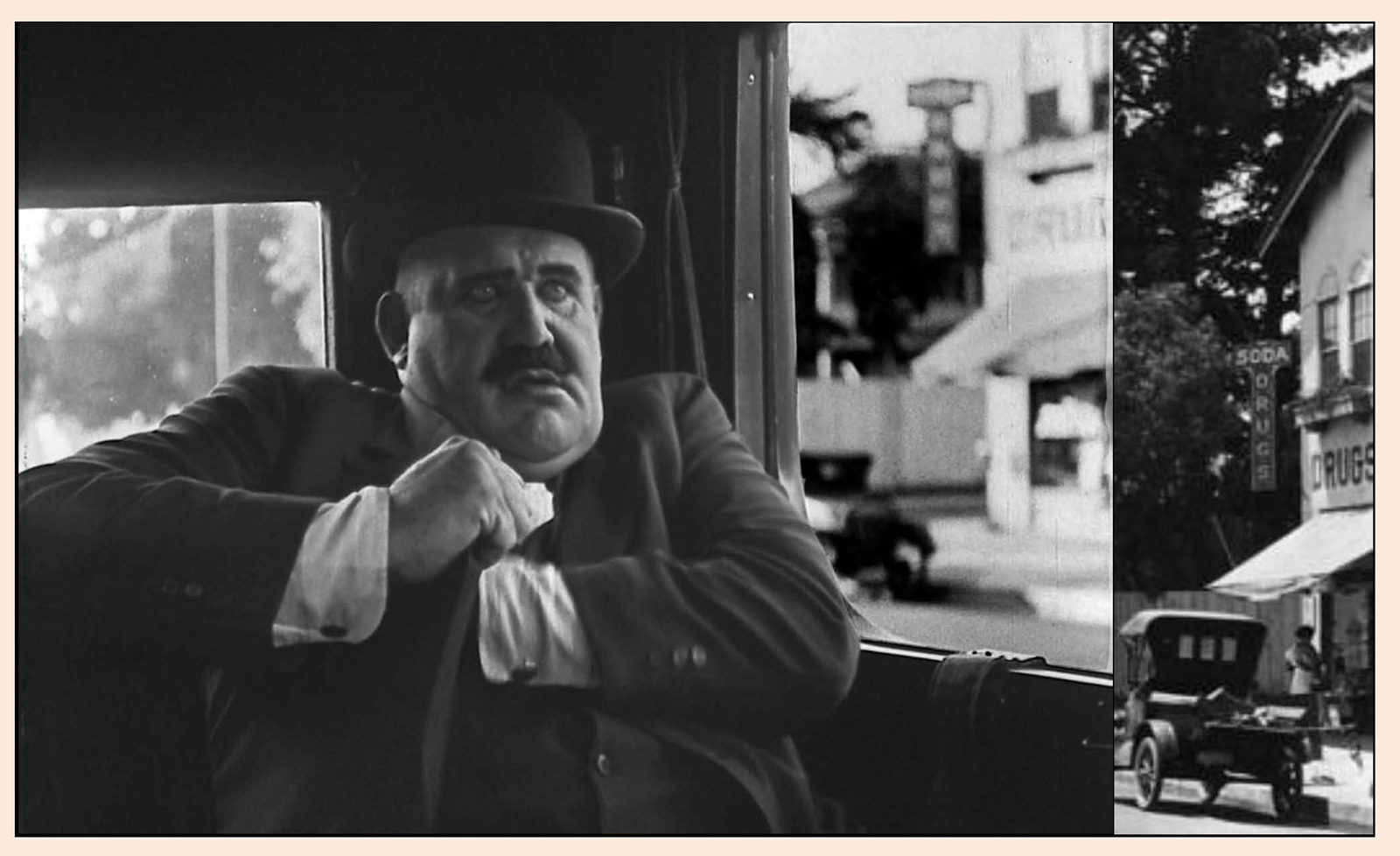 The Grim Game and Cops_Page_18Buster Keaton’s famous short film Cops (1922) remains his only self-produced movie that was filmed completely out of doors, with no interior scenes. Early in the film Buster helps Big Joe Roberts into a taxi in front of the Pantages estate at 590 N. 02a east down Sunset from DetroitVermont (shown HERE), while the scene where Joe leans out of the taxi window to retrieve his wallet from Buster, but not his cash, was filmed miles away at Sunset and Detroit (shown HERE).