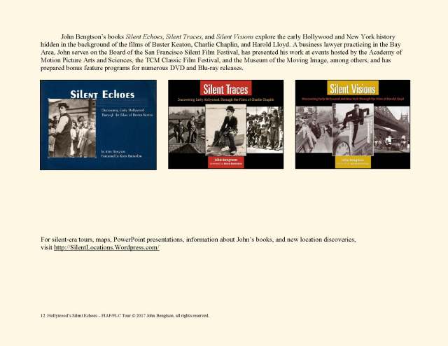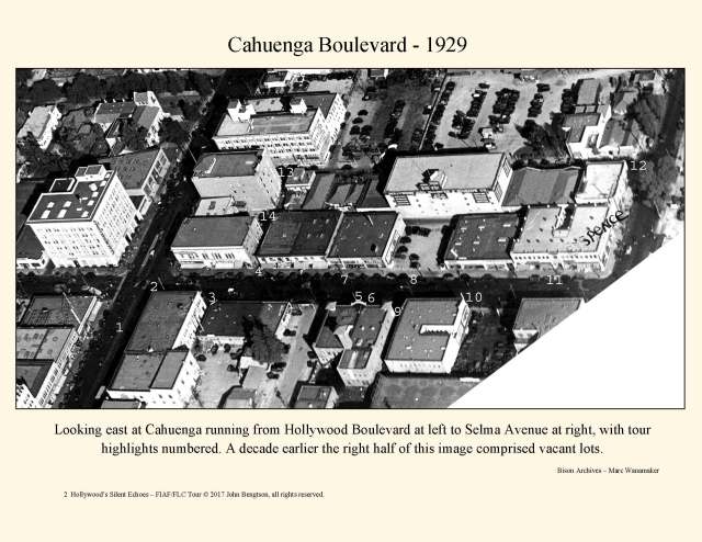 This April 28-30 weekend I was honored to lead guests from 20 countries on a series of Hollywood walking tours for the 2017 FIAF Congress and Film Librarians Conference hosted by the Academy of Motion Picture Arts and Sciences and the UCLA Film and Television Archive. The remainder of this post is a brochure I created for the tour, which can also be downloaded HERE. (I’ve also prepared a full text-only tour all around Hollywood, with over 50 entries, that can be downloaded HERE.)