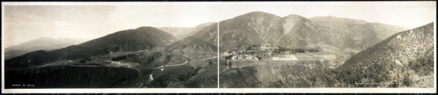 Click to enlarge. 1907 – the Arrowhead Hot Springs resort beneath the natural arrowhead rock formation. LOC.