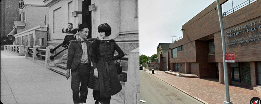 Coney Island – View (2) – Al escorts his new female companion from the Biograph laboratory entrance. The home at 812 E 176th still stands at back.