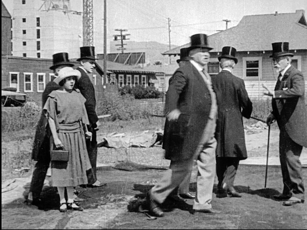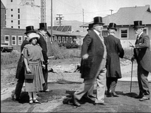Looking north at the lemon warehouse across the street – Buster with Big Joe Roberts and Roscoe Arbuckle on the studio lawn.