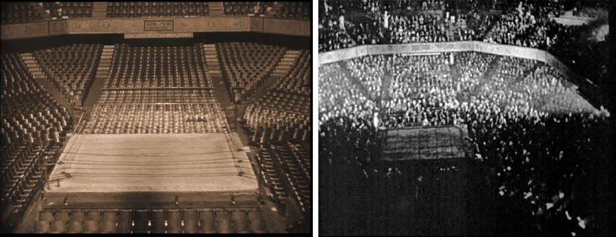 Click to enlarge. The extant Olympic Auditorium appearing in Keaton’s Battling Butler and in the Three Stooges’ Punch Drunks (1934).