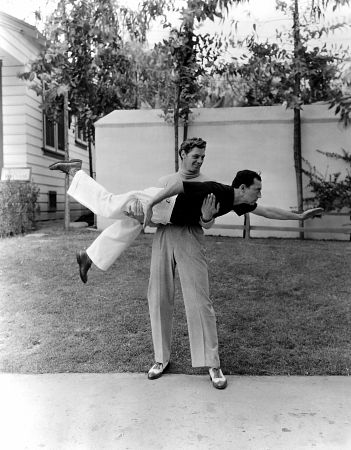 Louis B. Mayer, as Keaton was the only star to rent space off of the lot. Since Keaton worked at MGM for more than two years before the Kennel was built, the likely scenario is that Keaton indeed first began renting a place off campus on Grant Ave., as he remembers in his book, and then later moved on campus once the Kennel was built. (You can read about Keaton’s Grant Ave. bungalow HERE). For some reason Keaton conflates the Grant Ave. bungalow and the MGM Kennel in his account. [Update – Johnny Weissmuller gives Buster an aerial swimming lesson, revealing the east side of the Kennel behind them.]
