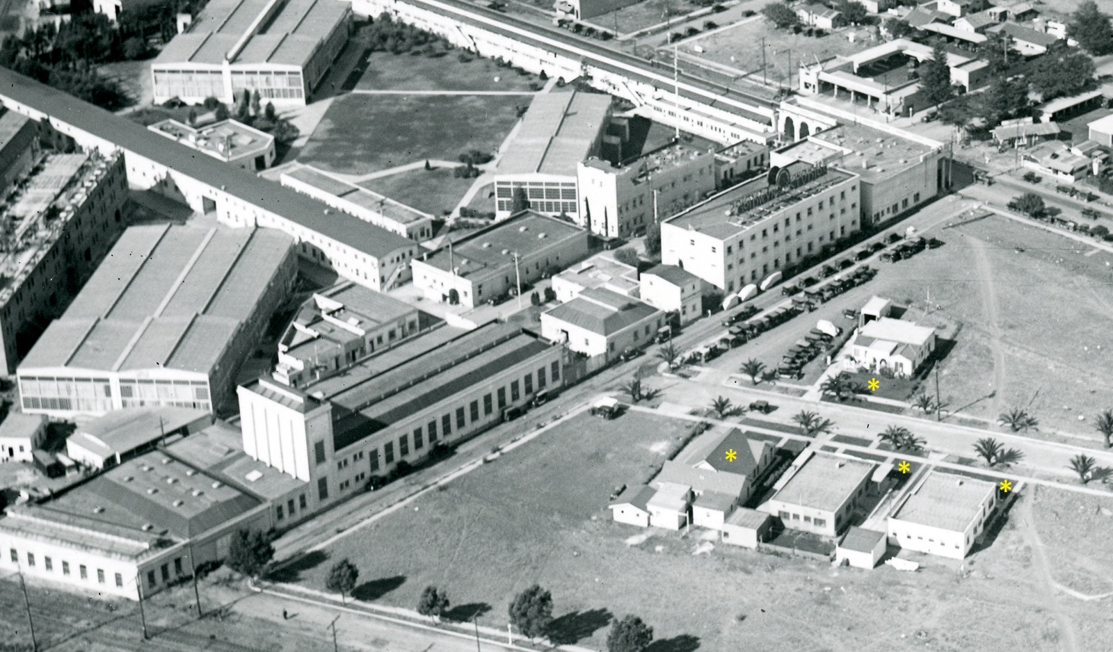 Click to enlarge – 1932 – looking SE along Washington Blvd. towards the back of Keaton’s Kennel (box) on the MGM lot. The “New York” set appearing in The Cameraman (1928) appears to the far right.