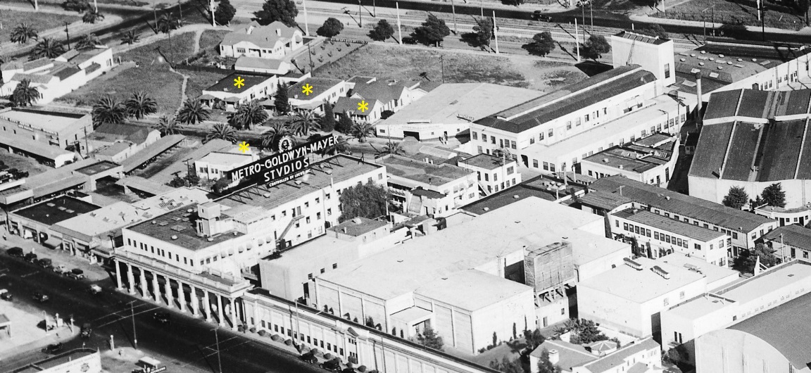 As one of MGM’s biggest stars, Buster Keaton once had a private bungalow dressing room on the studio lot, jokingly dubbed “Keaton’s Kennel.” A reader correctly wrote long ago that the Kennel stood along the north side of the lot, but the precise location remained a mystery. So when noted biographer James Curtis (who’s busy now working on Keaton) asked me to look into the Kennel, I eagerly jumped in. As we’ll see, part of the challenge is that Keaton himself conflated facts and descriptions of the place.