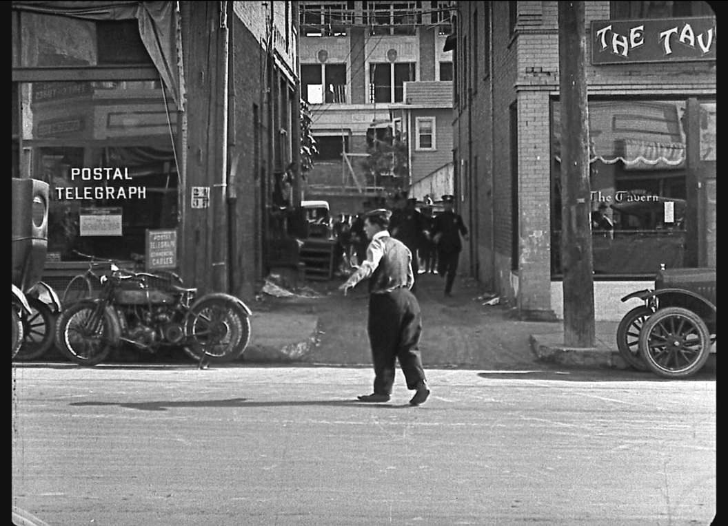 Oliver Hardy at the Chaplin-Keaton-Lloyd Alley