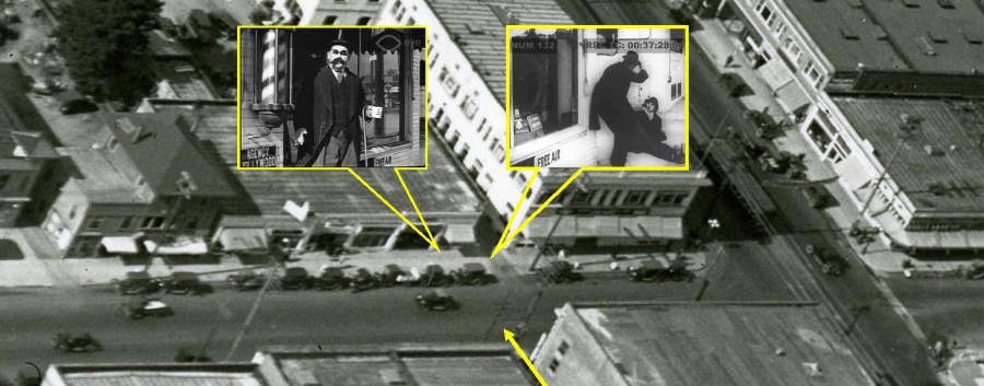 Oliver Hardy at the Chaplin-Keaton-Lloyd Alley