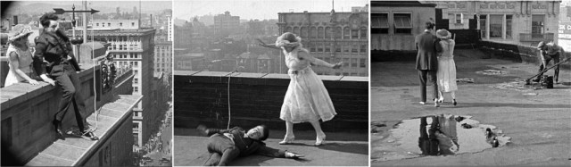 Three different Safety Last! rooftops for the closing scene, 548 S. Spring Street, 3rd and Spring, and 908 S. Broadway.