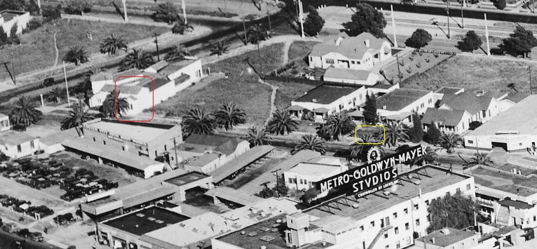 But where was Keaton’s original bungalow off campus? He writes at page 214 of My Wonderful World of Slapstick that it was located where the Irving Thalberg Memorial Building now stands in Culver City, which places it on former Grant Avenue. Studying vintage maps and aerial photos, there were only a few candidate homes.