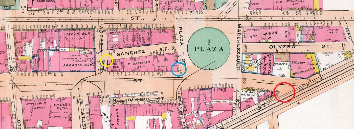 Corner might not seem so crazy when you consider that’s where the water department was located early on (to the left side). Didn’t the Zanja Madre run underground in pipes right here? These film makers seem to know where all the historic spots are.