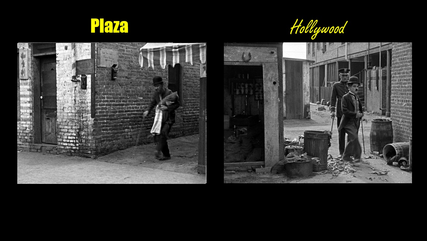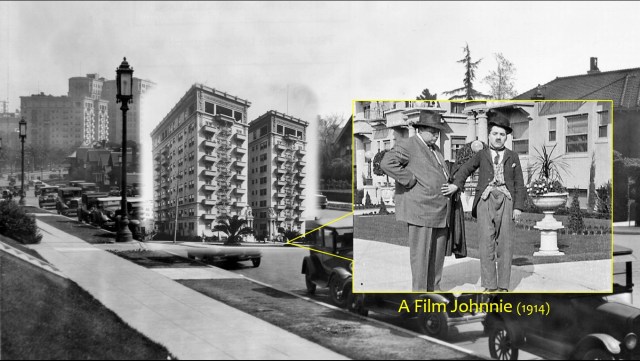 Overlapping locations along Wilshire Blvd., from A Film Johnnie (1914) and The Kid.