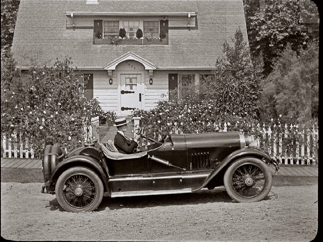 Rejected by his girl, portrayed by Ruth Dwyer, Buster leaves her home and then arrives at the club, presented onscreen with this stunning lap-dissolve transition. While this digital effect is now commonplace, Keaton had the foresight to envision it a century ago, and the skill to create it the old-fashioned way, by re-exposing the same film within the same camera, and using surveying equipment to assure the car was aligned in exactly the same position for both shots.
