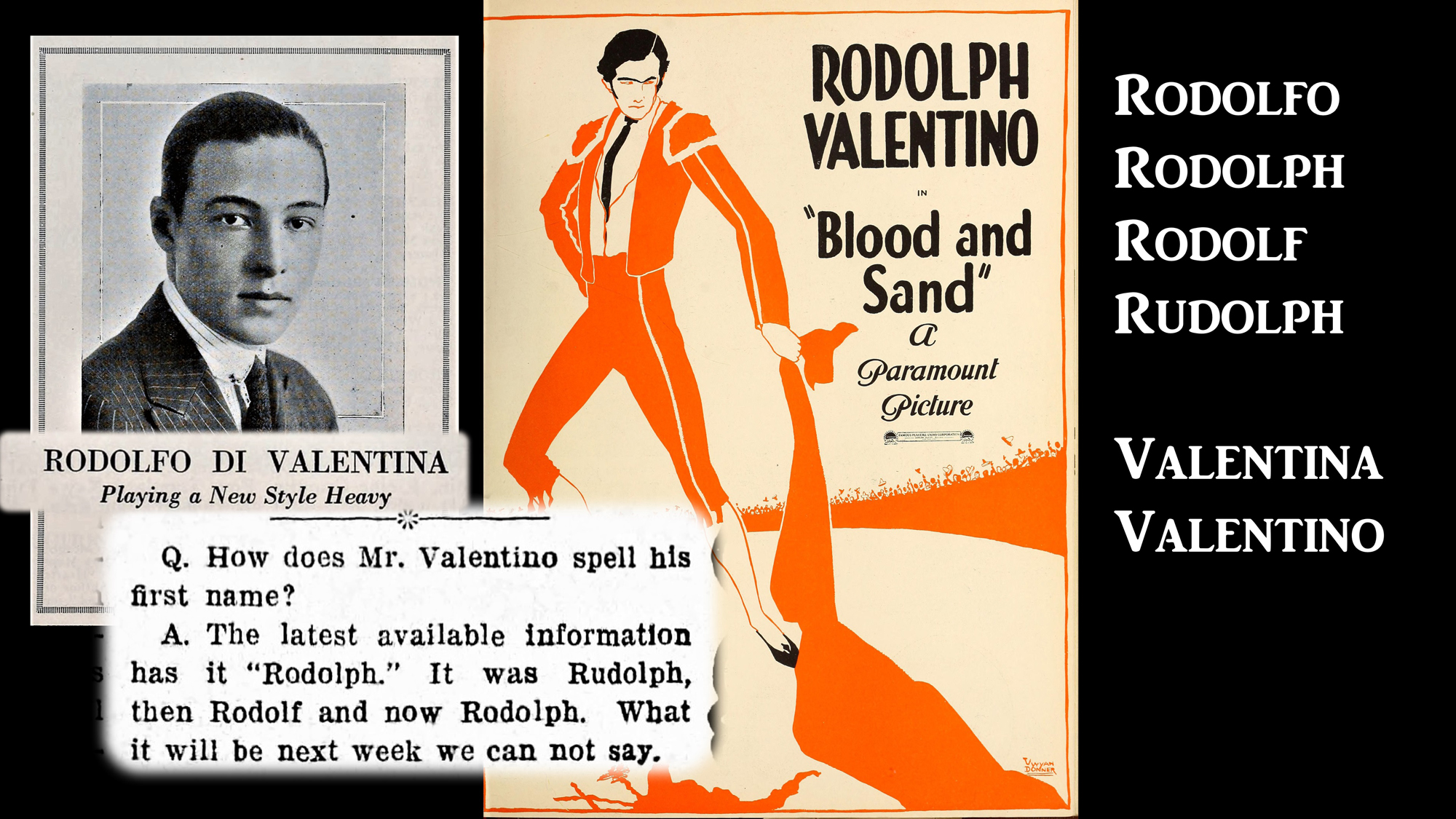 Rudy spelled his name differently over the years, and was promoted as RODOLPH rather than Rudolph for Blood and Sand.