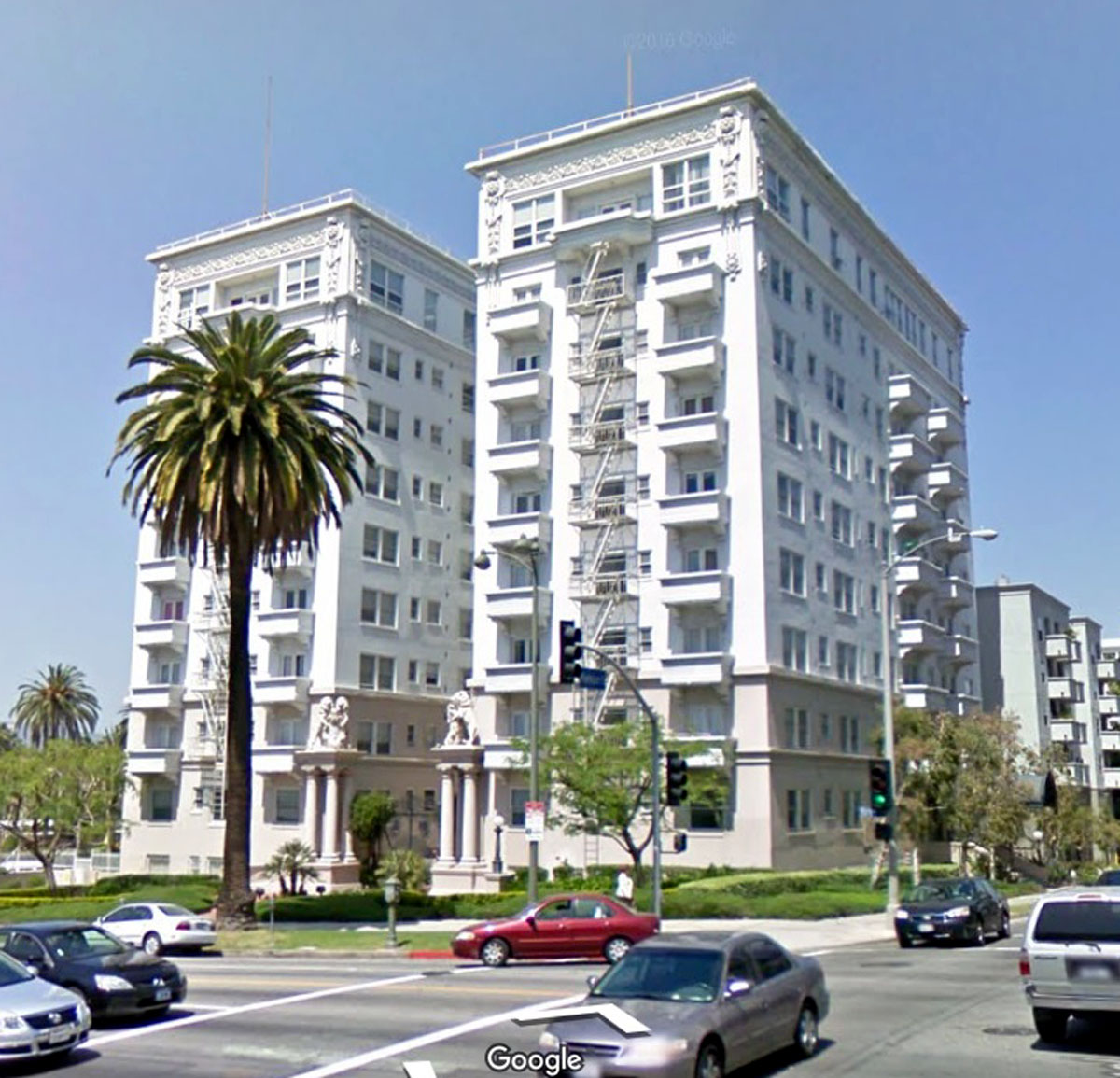 To begin, Soft Shoes depicts Harry Carey sneaking in and out of apartment buildings – the first to appear is the Bryson (lower left), still standing at 2701 Wilshire Boulevard near Lafayette Park.