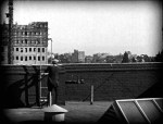 Above, Soft Shoes left, looking SW, a composite image from Chaplin’s The Kid, right, looking south. Both views show the same drainspout and corner alley bulletin board.