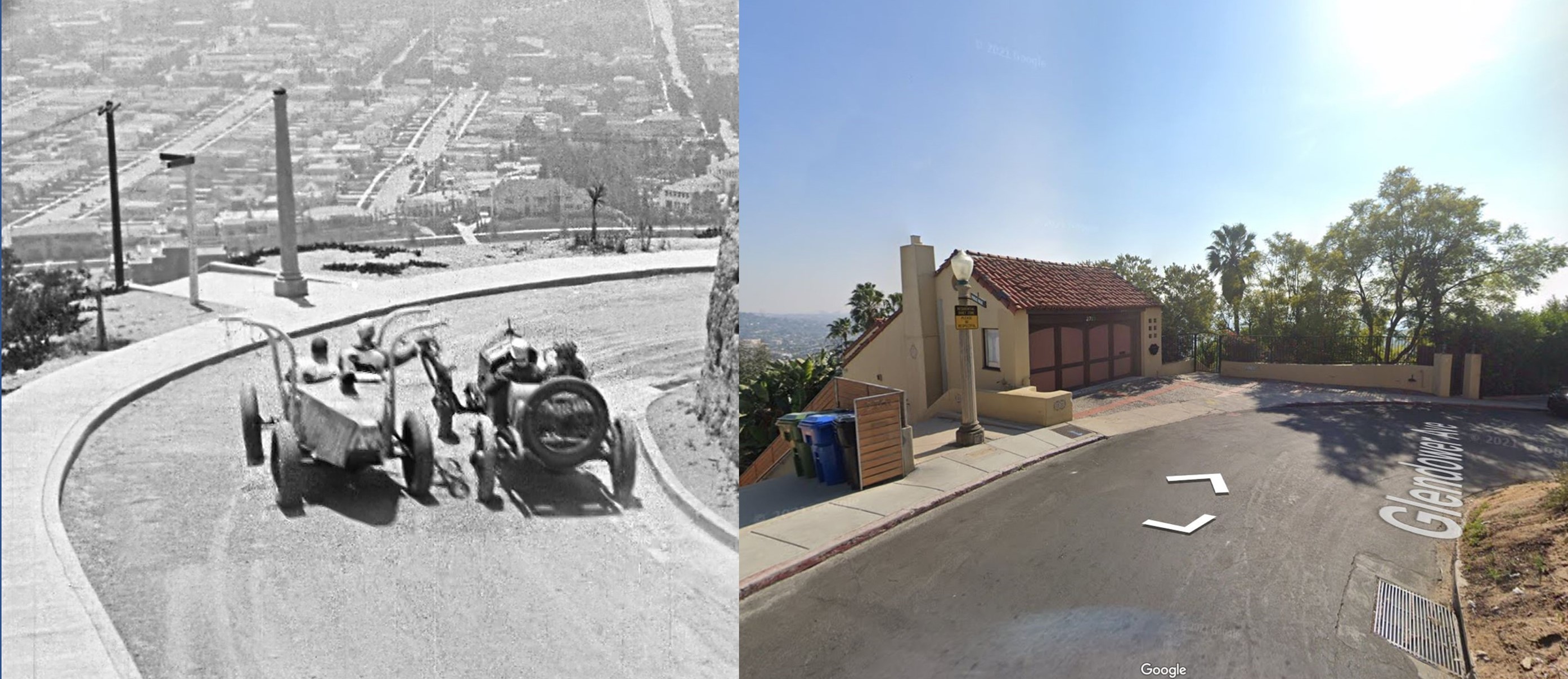 Above, covered in this Part One post, matching views of the auto race appearing earlier in Lizzies along 2763 Glendower Ave.