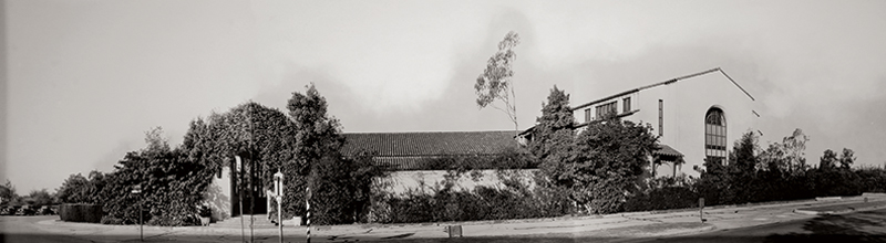 Caption from the Wilshire Country Club’s history page “The original Clubhouse completed in 1922 on the corner of Rossmore Ave. and Temple Street, which became Beverly Blvd. upon its construction through the golf course in 1924.” Given the dense foliage, this photo was taken well after Buster and Harold filmed here in 1924.