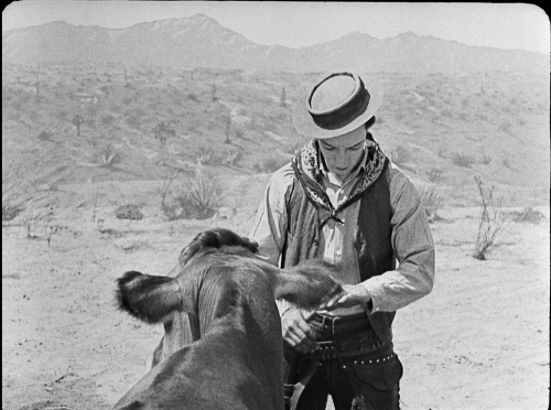 Next, in a scene that echoes Buster dislodging the rock from Brown Eye’s hoof, the rancher’s daughter, played by Kathleen Myers, beckons Buster to join her beside a well to help remove a splinter from her hand.