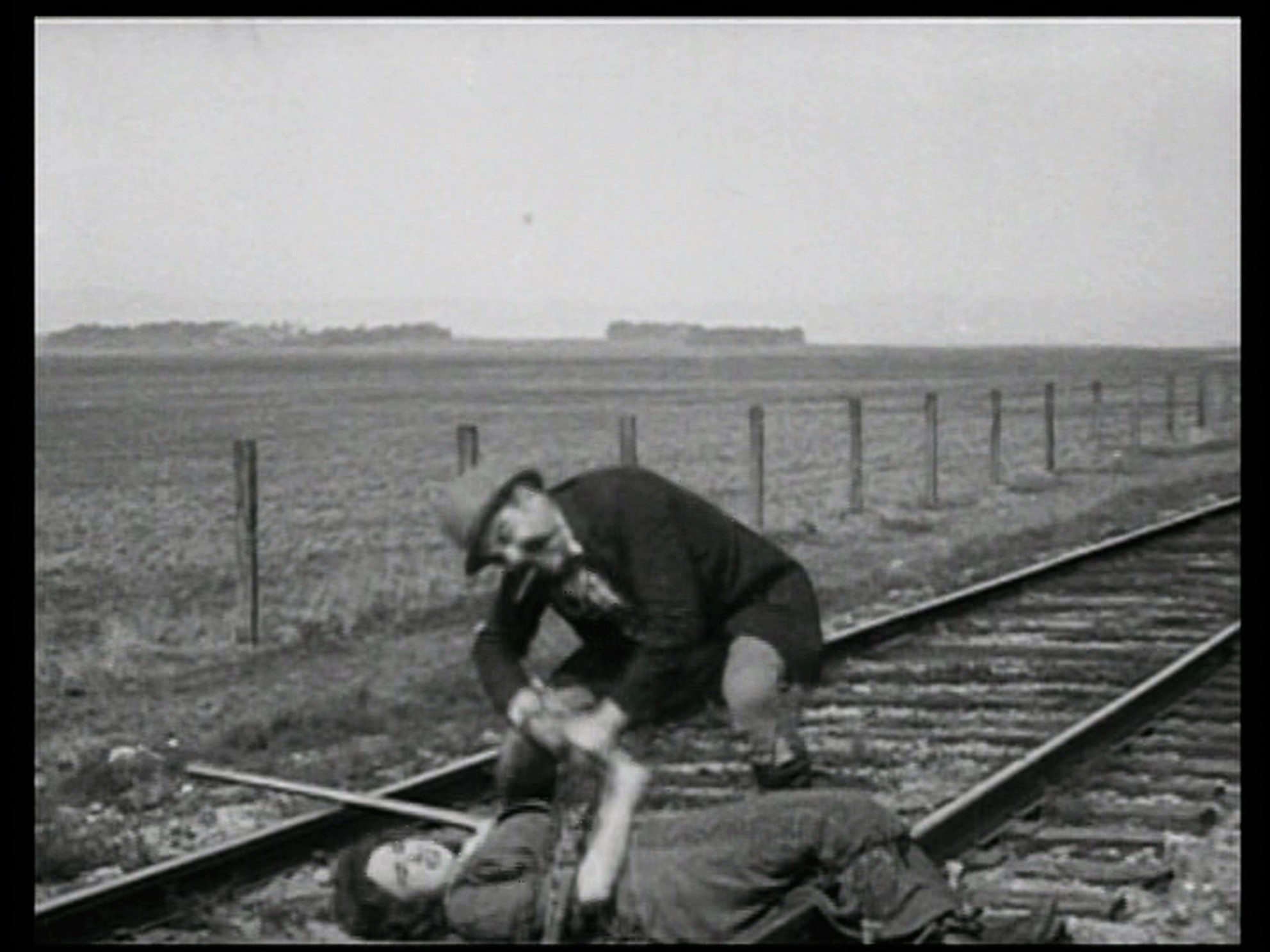 First, Ford Sterling ties Mabel to the railroad tracks during Barney Oldfield’s Race for a Life (1913). This classic scene was staged along the frequently filmed north-south stretch of track that ran along what would later become the east boundary of LAX International Airport.