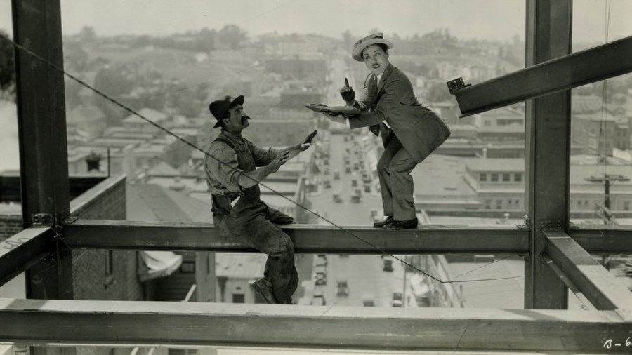 Monty stunt climbing scene above the Third St Tunnel – Paging Love (1923)