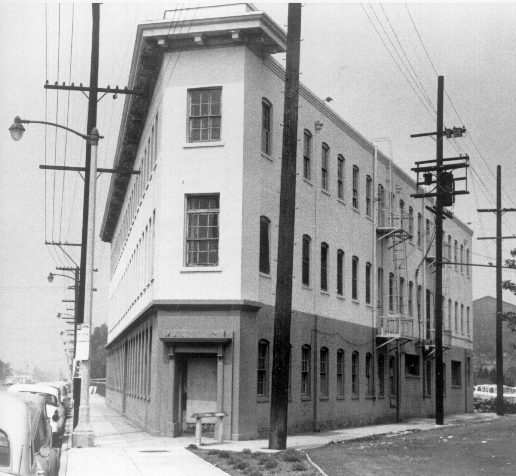 Buster runs to the right, east, beside the W Washington side of the Rutland Apartments standing on the corner of Washington and Main Street.