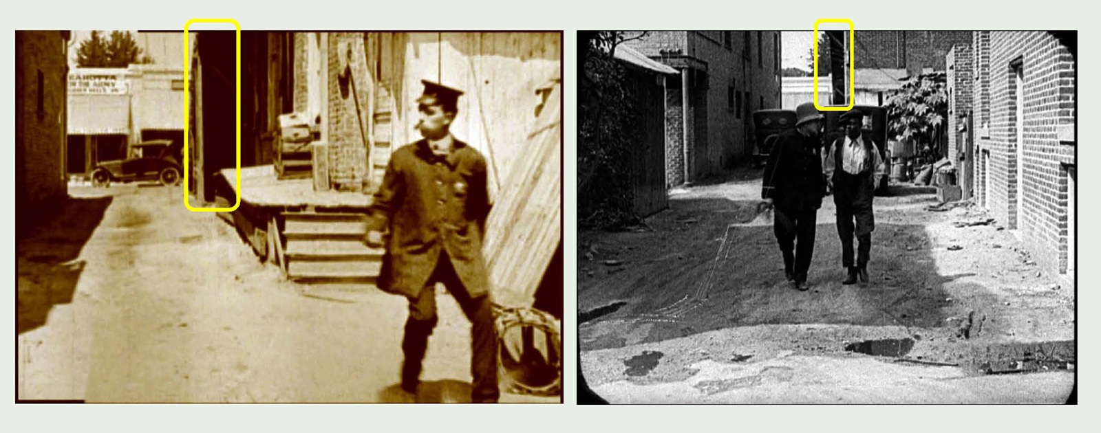 A closer view of 1062 Vine Street appearing in two films; Keaton’s The Scarecrow and Chaplin’s The Fireman.