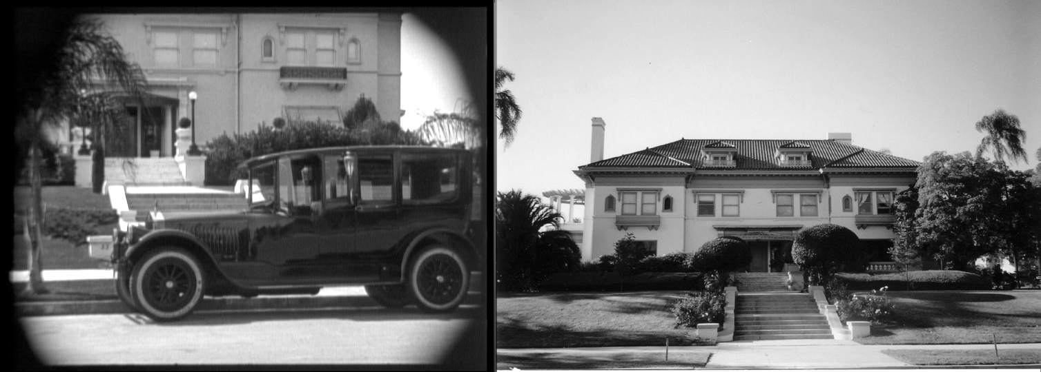 Across the street from Mary Pickford’s house is the mansion where Edna Purviance abandons her infant son (see above) at the beginning of Charlie Chaplin’s The Kid (1921).
