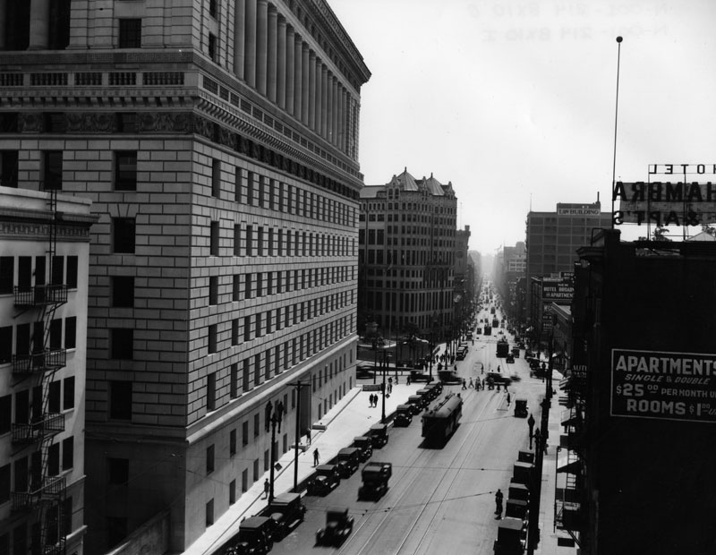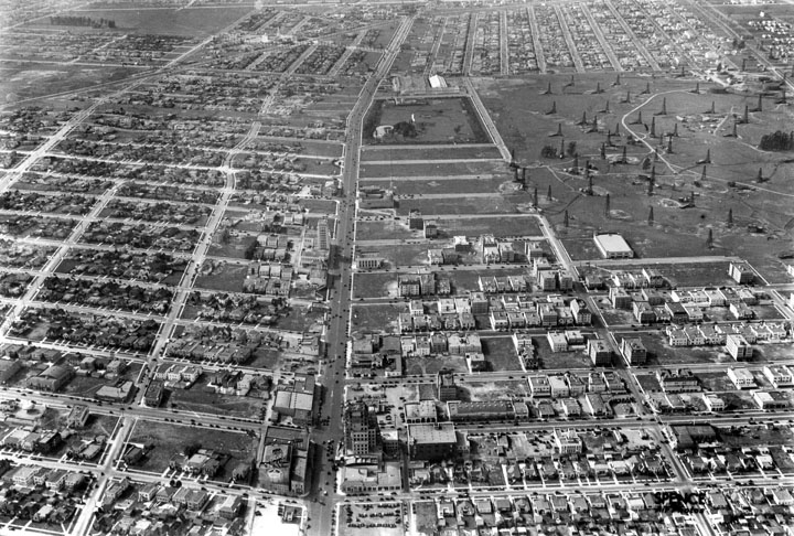 A 1930 view west of the filming sites along Wilshire – LAPL.