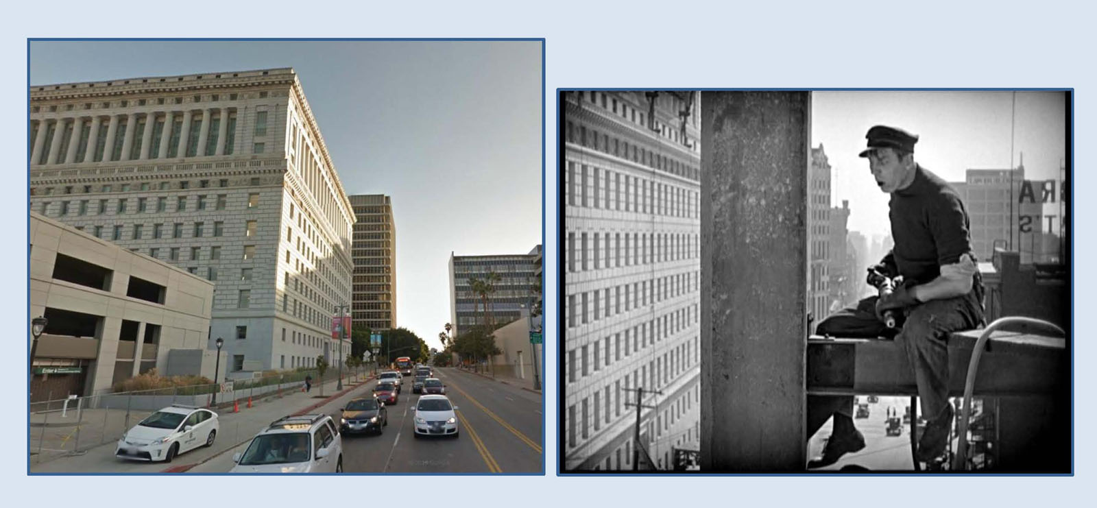 As shown above, the Orpheum Theater stands just a few steps north from where Harold Lloyd staged his clock climbing stunt from Safety Last! (1923). You can read more about the Orpheum Theater HERE and many posts about Safety Last!HERE.