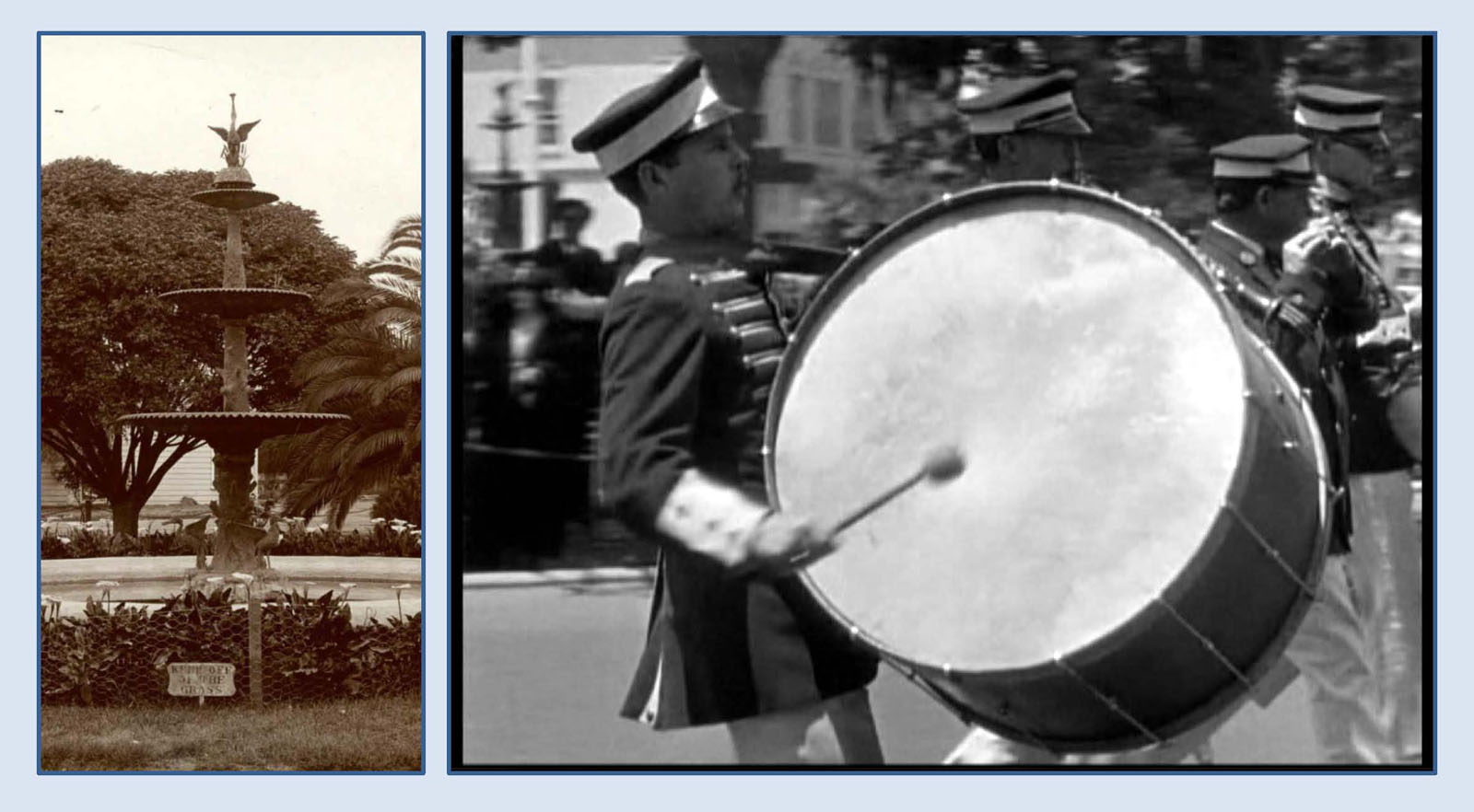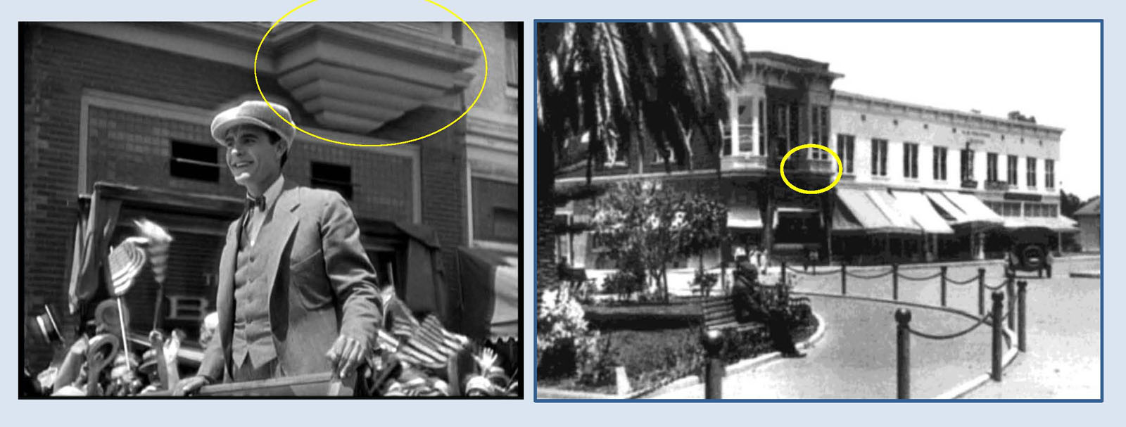 Stan Laurel’s solo appearance beside the mansion in White Wings (1923) – the mansion at 3500 W. Adams – Stan and Ollie dressed as a goat fleeing the home in Another Fine Mess. LAPL.