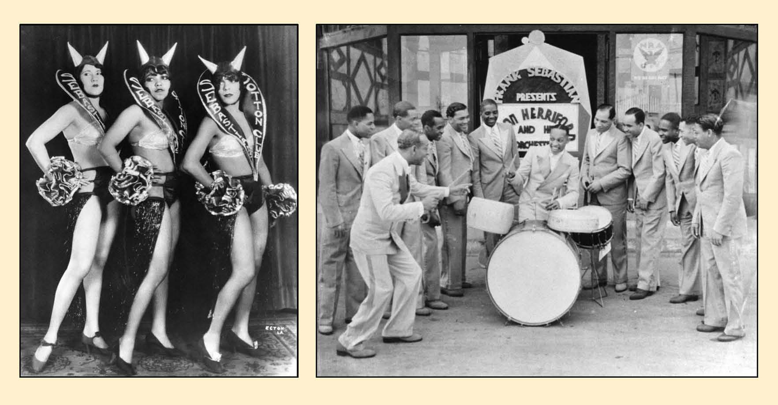 Some of the lively “black and tan” acts to appear at the Cotton Club – Creole dancing girls and Leon Herriford and his Orchestra. LAPL and LAPL.