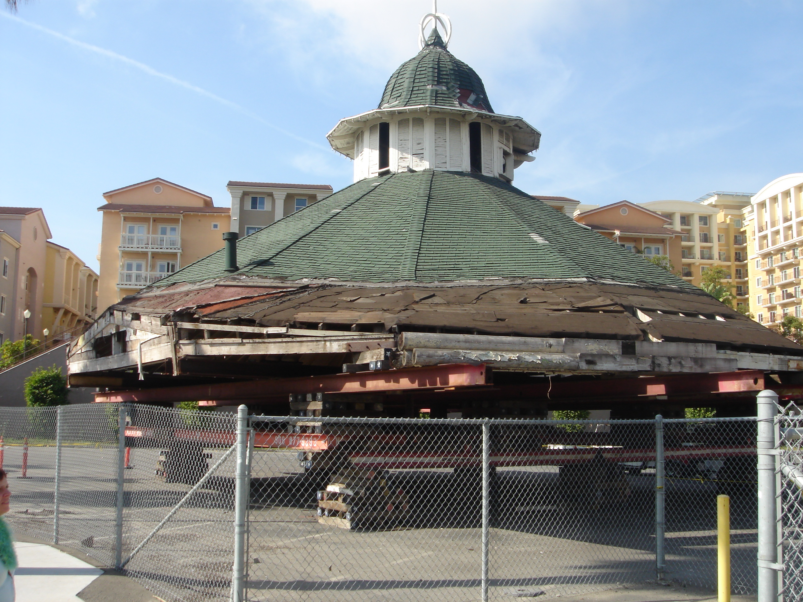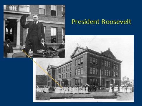 Looking south towards the terrace above the north end of the Hill Street Tunnel. The red box marks the extant Hall of Justice, completed in 1925. The building to the left of the red box in the movie frame was the former Alhambra Hotel. It originally stood on the corner of Temple and Broadway, and was moved laterally further north up Broadway to clear the site for the Hall of Justice on the corner. The Alhambra stood for years beside the south face of the Broadway Tunnel, another Los Angeles landmark lost to history. The yellow box marks the same corner of the United States District Court House. (C) 2012 Microsoft Corporation – Pictometry Bird’s Eye (C) 2012 Pictometry International Corp.