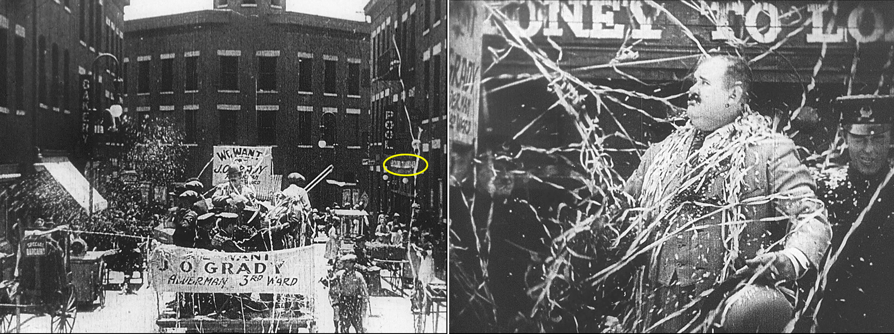 Harold Lloyd in Take A Chance before the Majestic Apartments at 406 W Temple – steps from the north end of the Hill Street Tunnel.