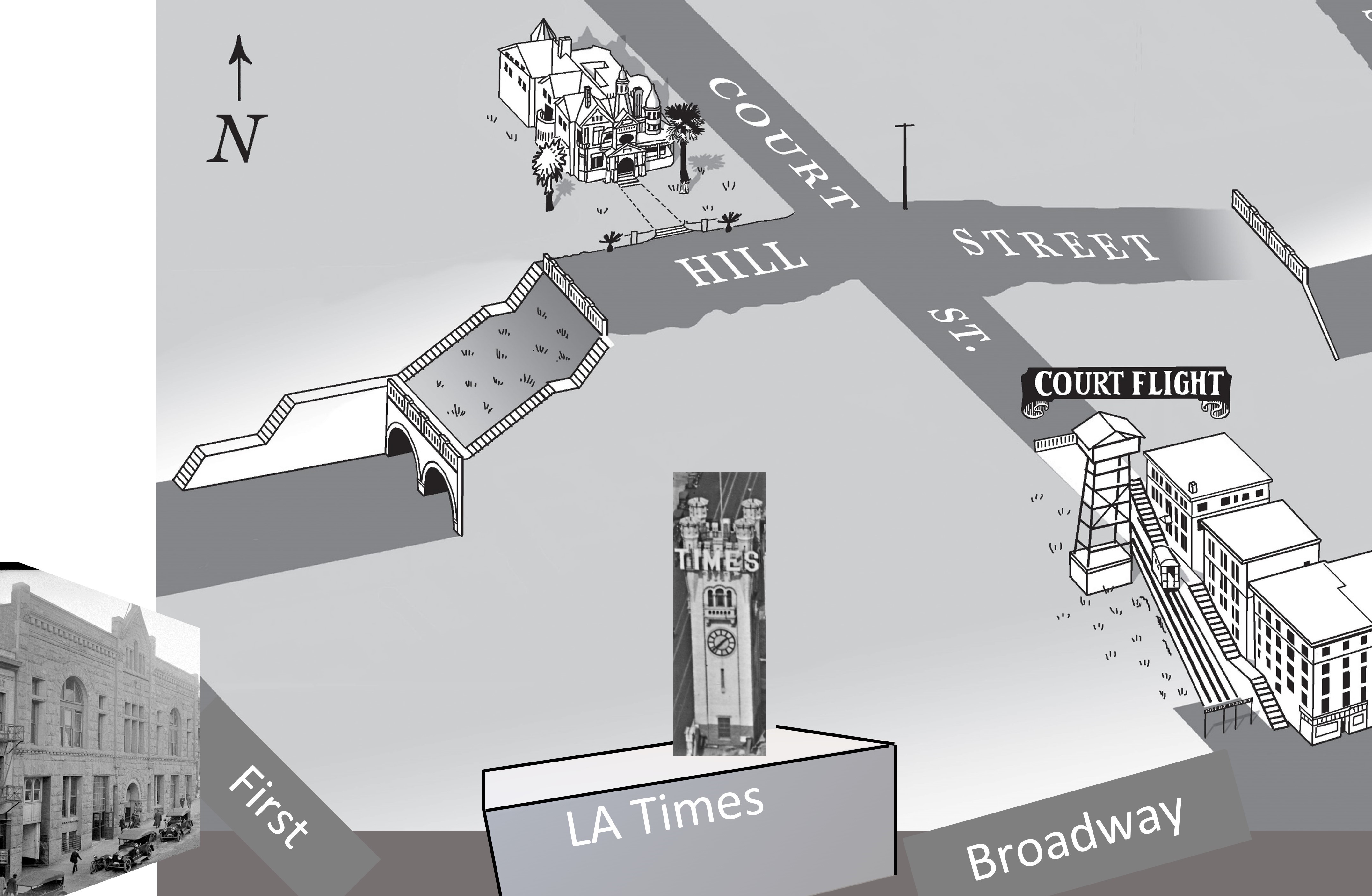 Late in the film, Carey and others run along dingy Chinatown alleys and street corners. Built in the 1880s, the original Chinatown grew east of the Plaza de Los Angeles on former grazing land owned by Mexican land baron Juan Apablasa and his son Cayetano. Denied property ownership, and restricted from living elsewhere, the Chinese suffered the neglect of their landlords, who left the privately owned streets of Chinatown unpaved. Crammed among noisy railroad tracks, towering gaswork plants, and the frequently overflowing Los Angeles River, Chinatown was the city’s least desirable address.
