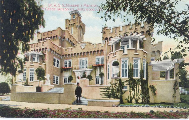 Built in 1913, the Bryson also appears prominently above Chaplin’s head during a scene from his Mutual comedy The Rink (1916), where Charlie meets Edna Purviance on the street at the SE corner of Wilshire Place and Ingraham (now Sunset Place). The Bryson may be best known as a setting described in Raymond Chandler’s 1943 Philip Marlowe detective classic The Lady in the Lake. Color photo Jeffrey Castel De Oro.
