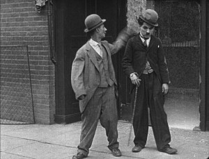 (Above, Huntington Digital Library, left, Soft Shoes upper right, Chaplin’s The Kid, lower right). Once the original leases expired, most of Chinatown was sold in 1914 to make way for the future Union Train Station. After years of litigation, the Chinese were evicted in 1934 for construction of the new terminal that opened to great acclaim in 1937. That same year community leaders formulated a master plan to develop a new Chinatown between Hill and Broadway, a mile northwest from its former site, where it remains today. Three identifiable scenes from Soft Shoes were filmed at the same spot, the corner of a narrow alley running from Marchesault Street to Apablasa Street, across from the corner of Cayetano Alley. Remarkably, one shot matches exactly where Charlie Chaplin filmed a critical scene from The Kid (1921). Here above (upper right Soft Shoes, lower right The Kid) are identical views looking south from Cayetano, across Apablasa, towards the narrow alley corner.